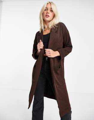 Pieces – Dorita – Strickmantel mit 3/4-Ärmeln in Braun
