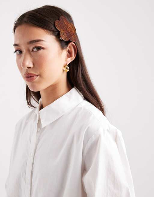 Pieces – Flache Haarspange mit Blumen-Motiv in Braun