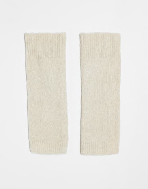 Pieces – Gestrickte Armstulpen in Cremeweiß