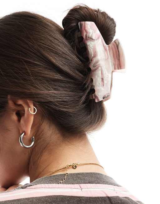 Pieces – Große Haarklammer in marmoriertem Rosa und Braun