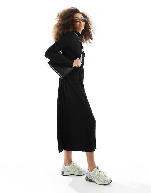 Pieces – Hochgeschlossenes Plissee-Midikleid in Schwarz