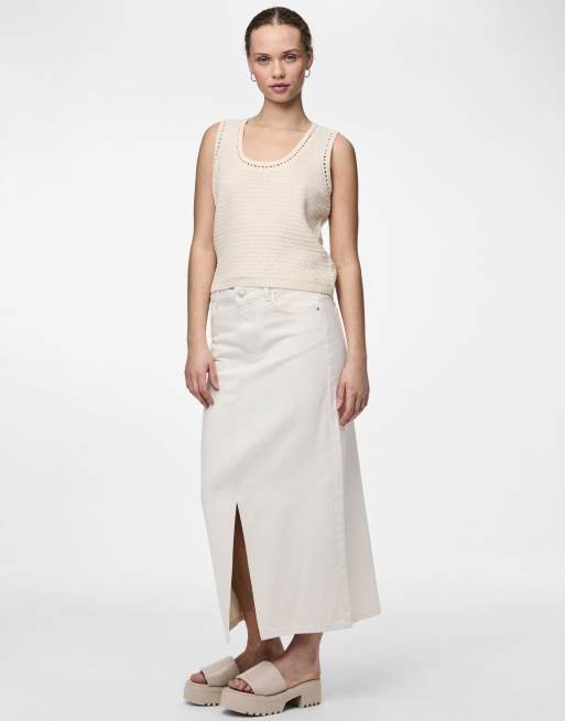 Pieces – Jeansrock in Weiß