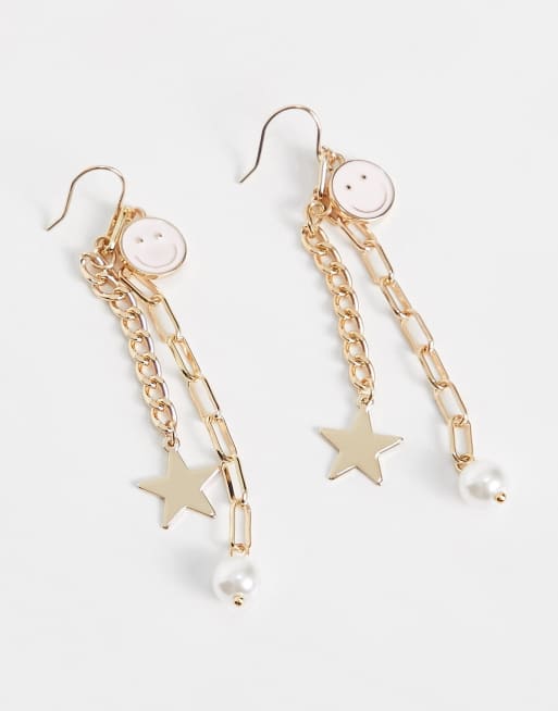 Pieces – Kettenohrringe mit in Gold Smiley- & Sternanhänger