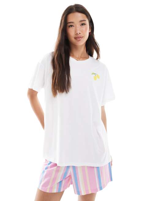 Pieces – Oversize-T-Shirt in Weiß mit „Amalfi Coast“-Grafik
