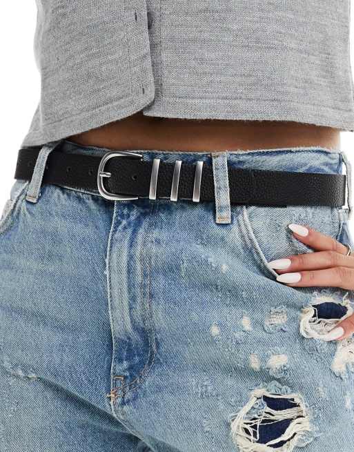 Pieces – Schwarzer Gürtel mit drei Silberschnallen
