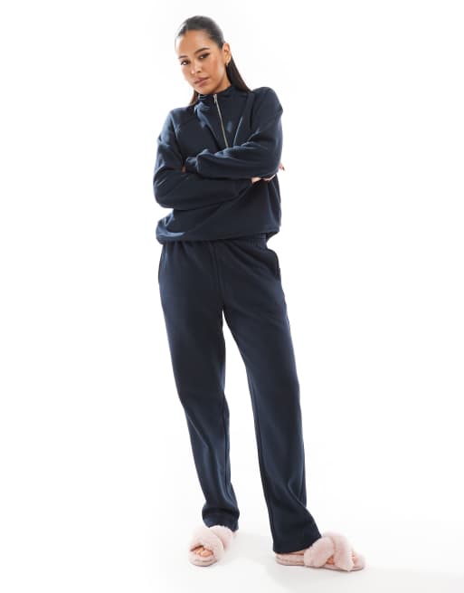 Pieces – Set in dunklem Marineblau, aus Sweatshirt mit kurzem Reißverschluss und Jogginghose mit Kordelzugbund