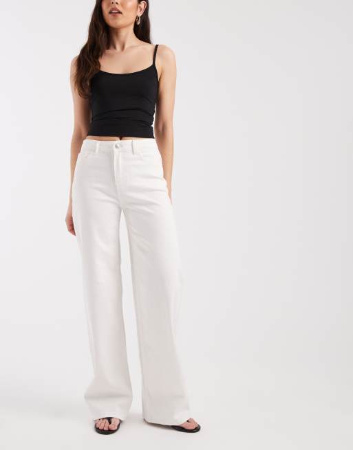 Pieces – Silke – Weit geschnittene Jeans in Weiß mit mittelhohem Bund
