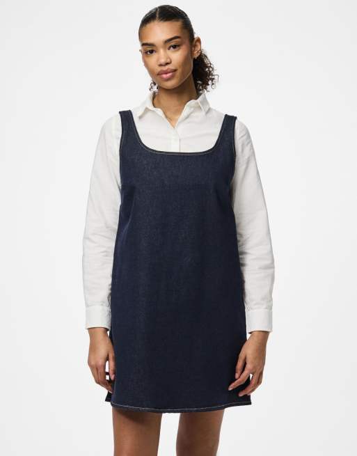 Pieces – Spencer – Latzkleid aus Denim in Dunkelblau
