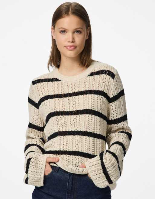 Pieces – Strickpullover in Birkenweiß