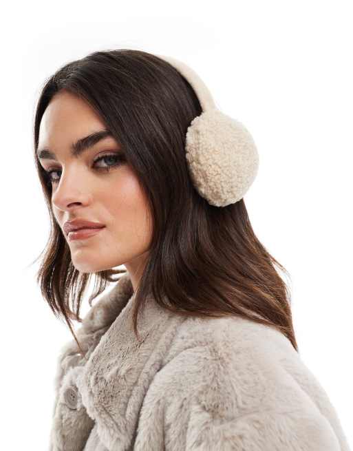 Pieces – Teddyfell-Ohrenschützer in Creme