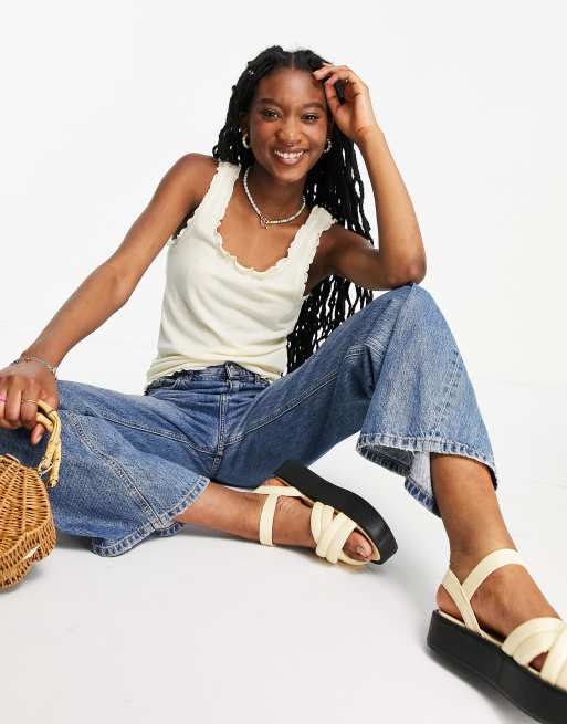 Pieces– Trägertop in Creme mit Kräuselsaum