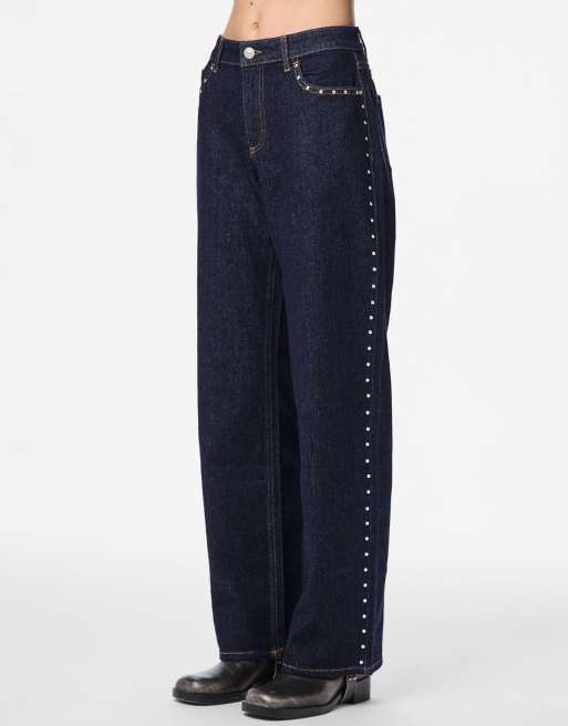 Pieces – Wide-Fit-Jeans aus Denim in Dunkelblau