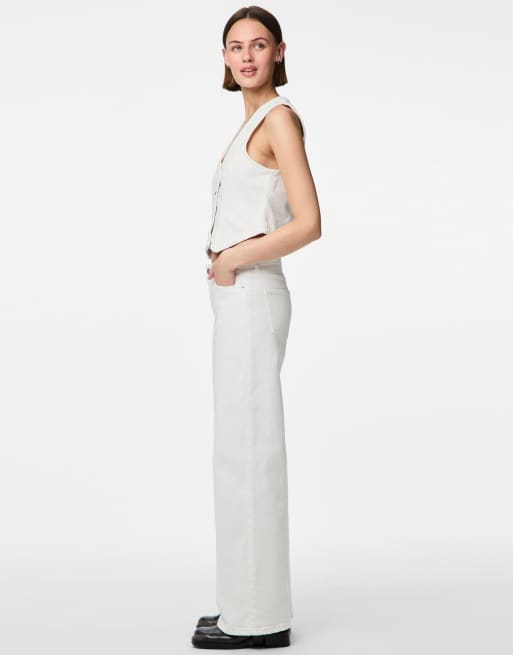 Pieces – Wide-Fit-Jeans in Blütenweiß