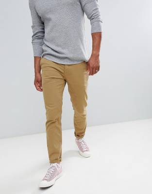 Pier One – Schmal geschnittene Chino-Hose in Hellbraun