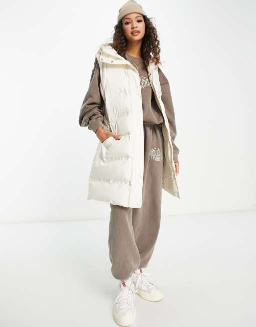 Pimkie – Ärmellose Oversize-Weste in Ecru mit Kapuze