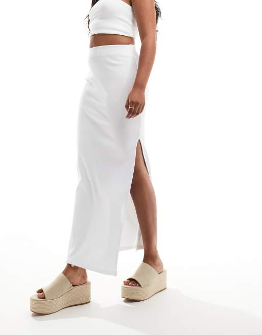 Pimkie – Gerippter Maxirock in Weiß mit seitlichem Schlitz