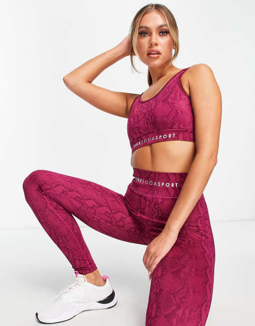 Pink Soda Sports – Sport-BH aus Polyester mit mittlerem Halt und himbeerfarbenem Pythonmuster - PURPLE