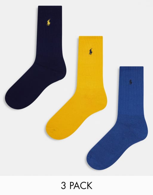 Polo Ralph Lauren – 3er-Pack Baumwollsocken in Gelb, Marineblau und Blau