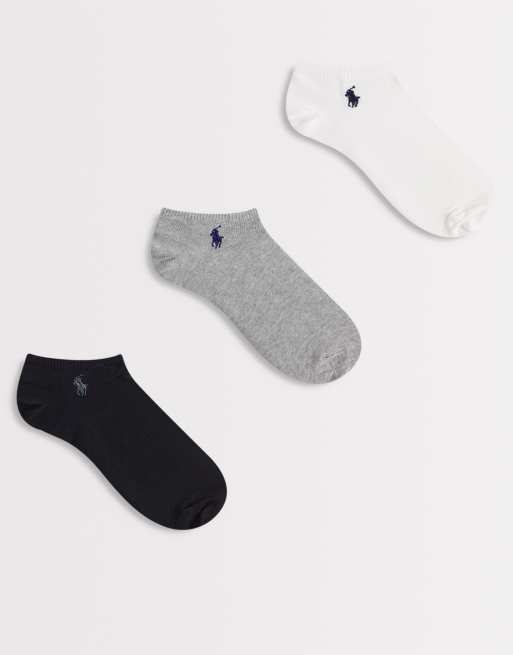 Polo Ralph Lauren – 3er-Pack kurz geschnittene Socken in Schwarz, Weiß und Grau