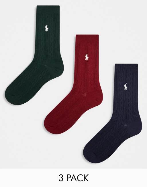 Polo Ralph Lauren – 3er-Pack Socken in Marineblau, Grün und Rot mit Logo