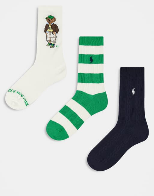 Polo Ralph Lauren – 3er-Pack Socken in mehreren Farben mit Bear-Motiv und Logo