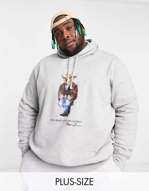 Polo Ralph Lauren Big & Tall – Kapuzenpullover in Kalkgrau mit Cowboybär-Print