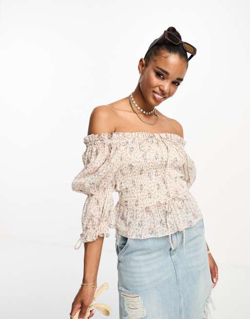 Polo Ralph Lauren – Boho-Bluse in Creme mit Blumendruck