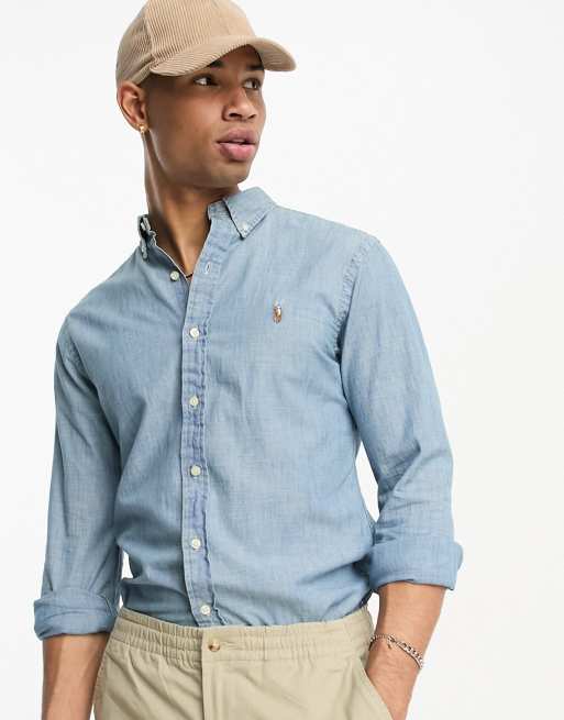 Polo Ralph Lauren – Chambray-Jeanshemd in heller Waschung mit schmalem Schnitt und Markenlogo