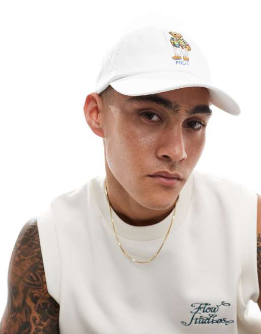 Polo Ralph Lauren – Chino-Baseballkappe in Weiß mit Bear-Logo