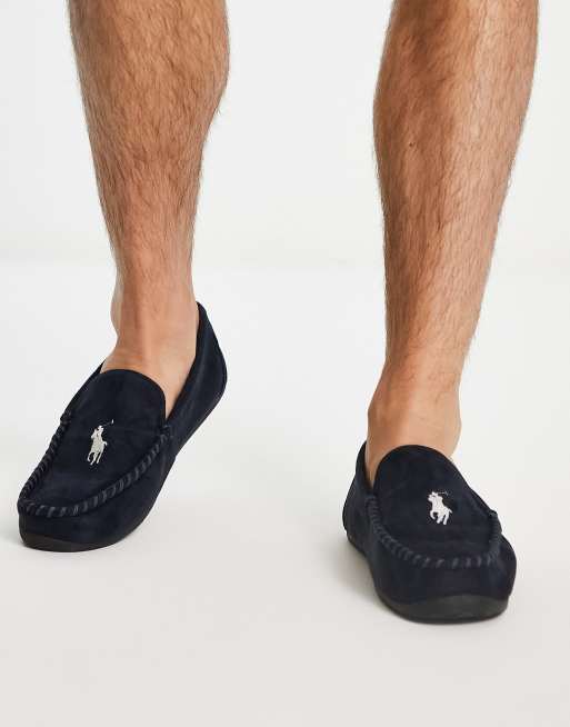 Polo Ralph Lauren – Declan – Mokassin-Hausschuhe in Marineblau und Cremeweiß