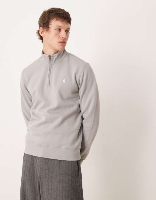 Polo Ralph Lauren – Doppelstrick-Pullover in Grau mit Markenlogo und kurzem Reißverschluss