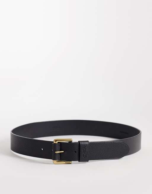 Polo Ralph Lauren – Gürtel aus genarbtem Leder in Schwarz mit Markenlogo