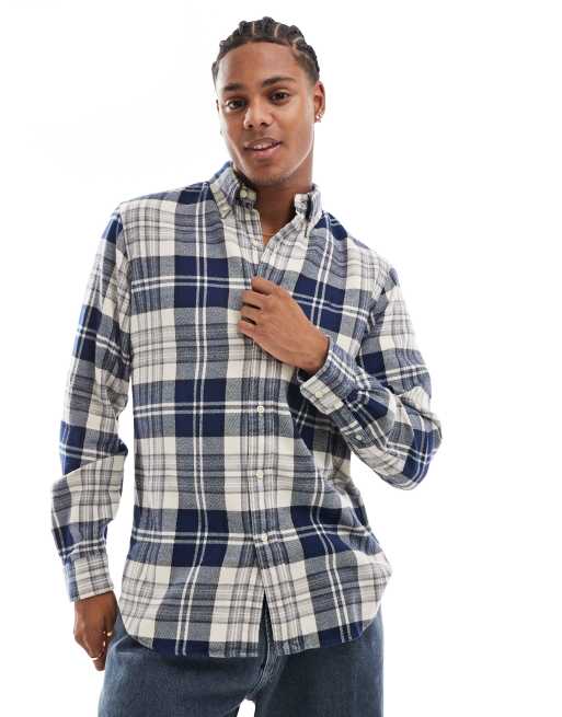 Polo Ralph Lauren – Hemd aus angerautem Flanell mit Karomuster in Creme/Marineblau und Markenlogo