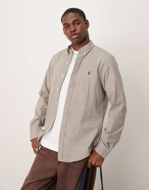 Polo Ralph Lauren – Hemd aus Stretch-Popeline in Hellbraun mit Markenlogo, Hahnentrittmuster und schmalem Schnitt