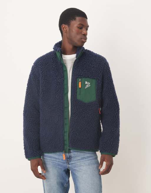 Polo Ralph Lauren – Jacke aus Teddyfleece in Marineblau mit Markenlogo und Reißverschluss