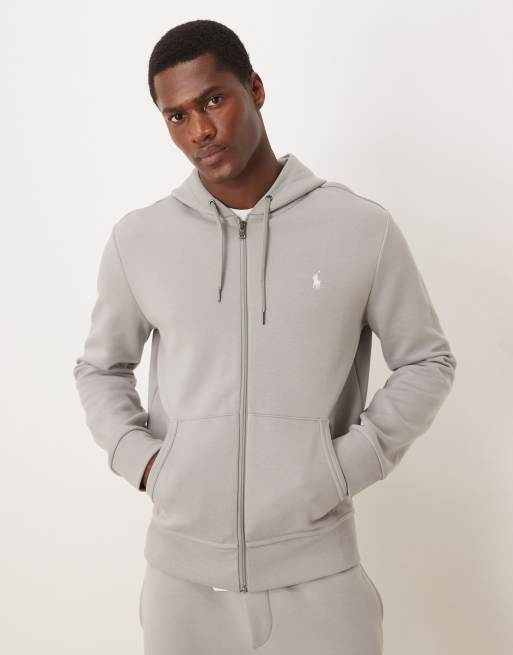 Polo Ralph Lauren – Kapuzenjacke aus Doppelstrick in Grau mit Markenlogo und Reißverschluss
