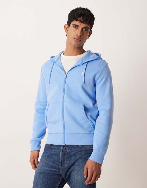 Polo Ralph Lauren – Kapuzenjacke in Blau mit durchgehendem Reißverschluss und gesticktem Pony