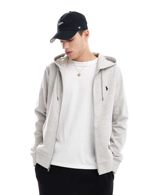 Polo Ralph Lauren – Kapuzenjacke in Grau aus Doppelstrick mit Markenlogo und Reißverschluss