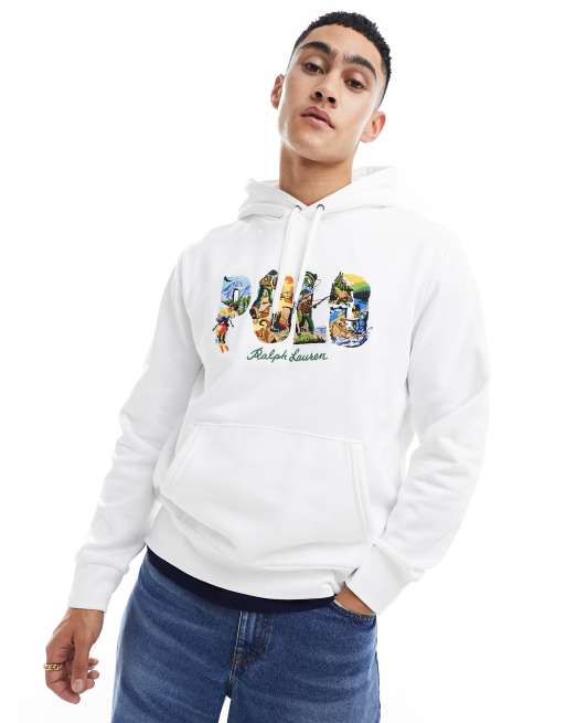 Polo Ralph Lauren – Kapuzenpullover in Weiß mit floralem Logoprint