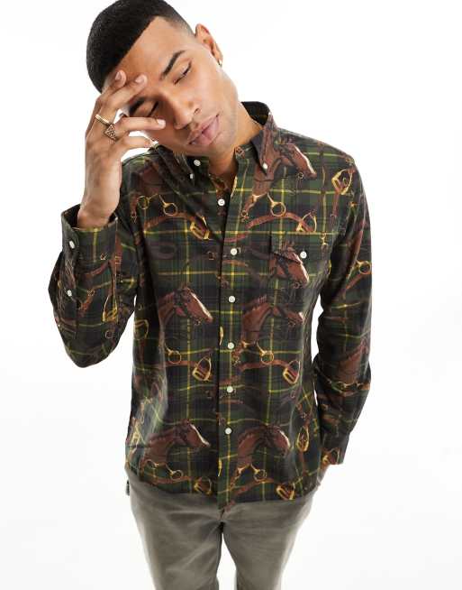 Polo Ralph Lauren – Klassisch geschnittenes, mehrfarbiges Oxford-Hemd mit Oversize-Schnitt und Pferde-Print