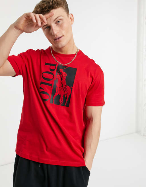 Polo Ralph Lauren – Klassisches Oversize-T-Shirt mit rechteckigem Polospieler-Logo vorn in Rot