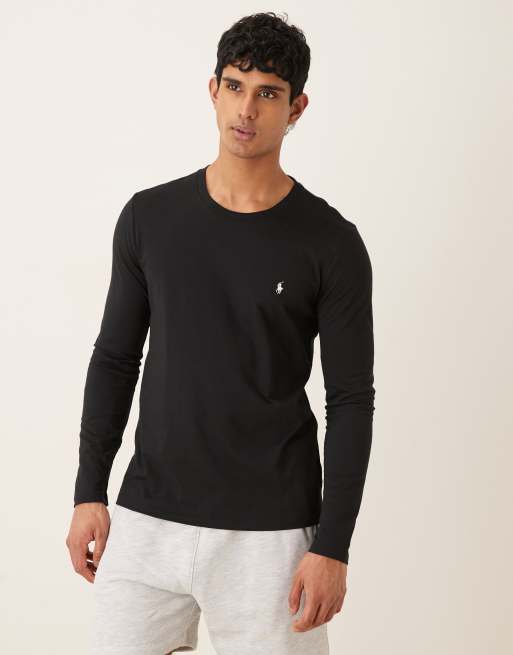 Polo Ralph Lauren – Langärmliges Lounge-Shirt aus Baumwolljersey in Schwarz