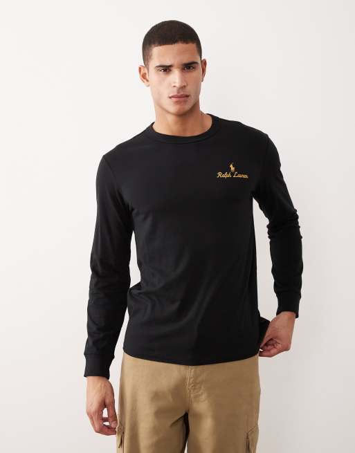 Polo Ralph Lauren – Langärmliges Shirt in Polo-Schwarz mit Logo-Schriftzug