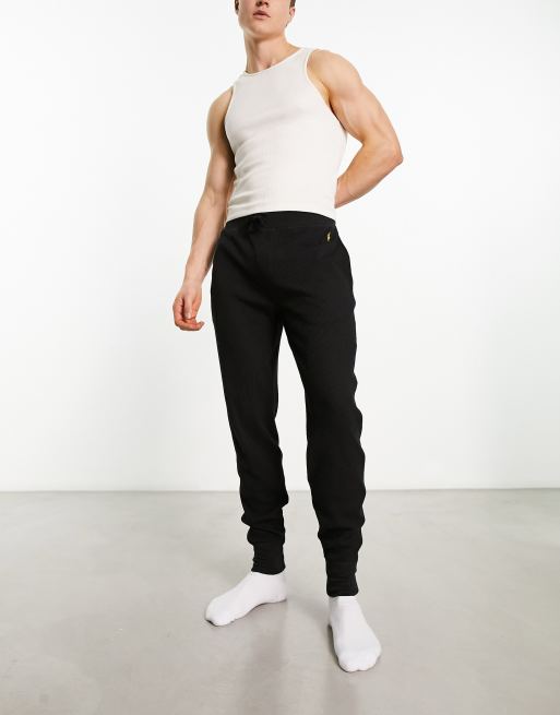Polo Ralph Lauren – Loungewear – Jogginghose in Schwarz mit Waffelstruktur und Polospieler-Logo