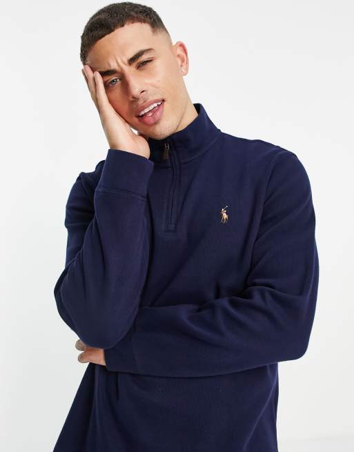 Polo Ralph Lauren – Marineblaues Sweatshirt mit Logosymbol und kurzem Reißverschluss
