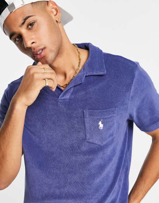 Polo Ralph Lauren – Polohemd aus Baumwoll-Terry in Navy mit Brusttasche und Markenlogo