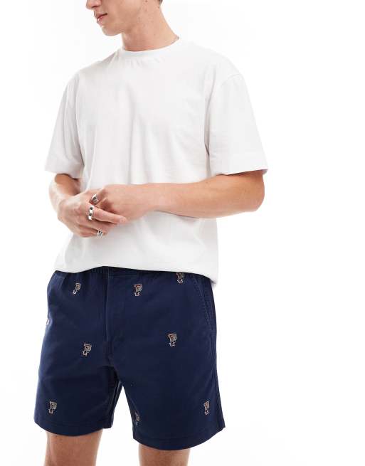 Polo Ralph Lauren – Prepsters – Chinoshorts aus Twill in Navy mit Retro-Sportlogoprints