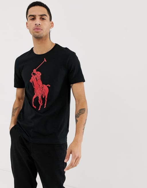 Polo Ralph Lauren – Schwarzes T-Shirt mit Rundhalsausschnitt und großem Polospieler in Rot