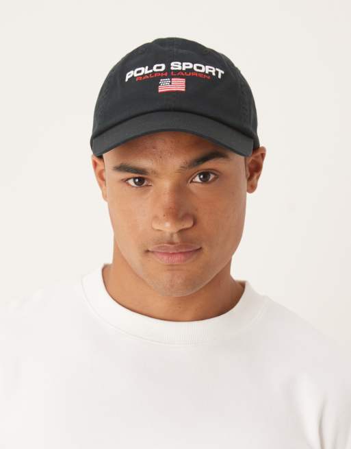 Polo Ralph Lauren – Sport – Baseballkappe aus Twill in Schwarz mit Flaggenlogo