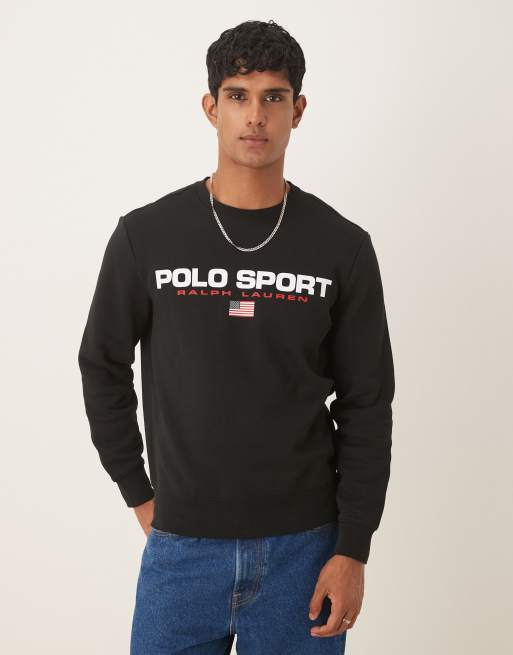 Polo Ralph Lauren – Sport Capsule – Sweatshirt in Schwarz mit Rundhalsausschnitt und Logo am Ausschnitt